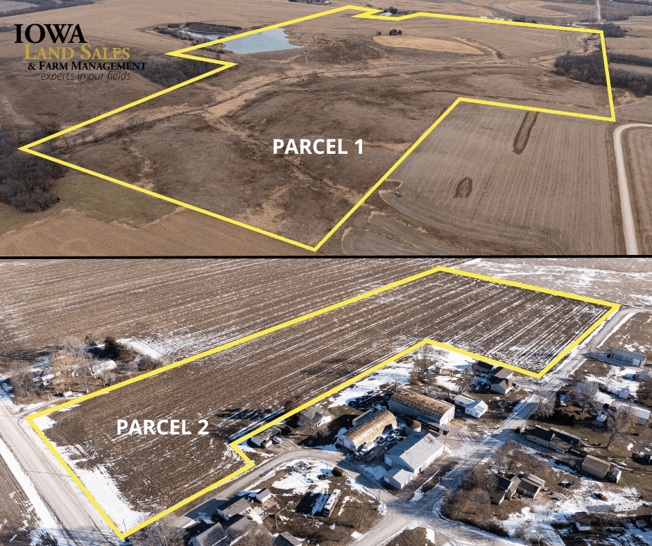 Method: This property will be offered for sale as two individual parcels using a timed online-only auction. Iowa Land Sales and its representatives are acting as agents of the seller. Seller reserves the right to reject any and all bids. If a bid is placed with less than 4 minutes left, the time on the auction will extend another 4 minutes. This procedure will continue until no bids are placed within the last 4 minutes of the auction. Bidding increments will be based on a total sales price.